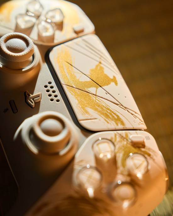 外壳采用了日本传统修复技法——金继为灵感,以立体的金色线条勾勒出庄严的羊蹄山。而手柄则融入了本作意象,以金色水墨画风格进行设计。